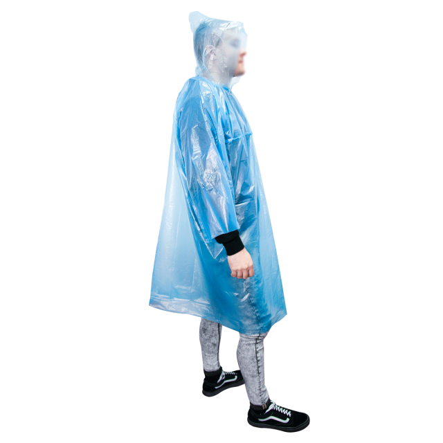 Синий дождевик "Ваш комфорт" Дождевик выполнен из полиэтилена толщиной 40 мкм, очень компактен, поместится даже в женскую сумочку. Плащ дождевик с