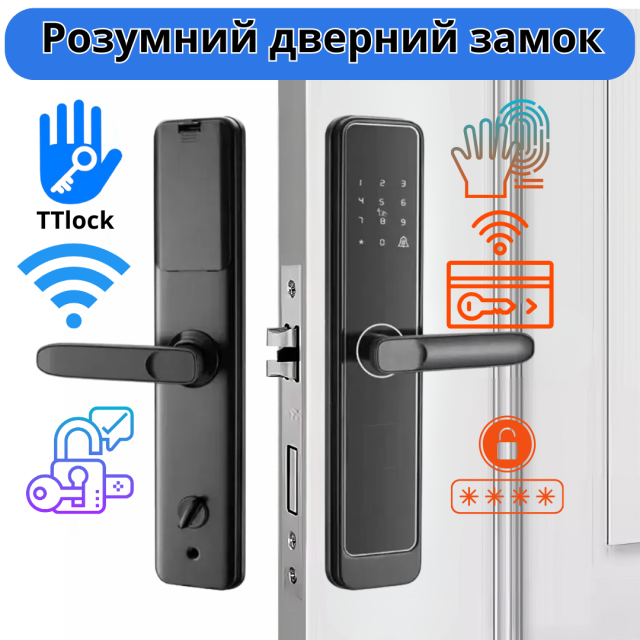 Функции замка включают пять способов разблокировки: через мобильное приложение, временный пароль, карту, ключ и дистанционное управление , а также через отпечаток пальца . Приложение позволяет удалённо контролировать замок, просматривать историю открытий двери и управлять настройками замка с любого расстояния. Также предусмотрен экстренный источник питания, который активируется при разрядке батареи, что позволяет продолжать использовать замок в критической ситуации.