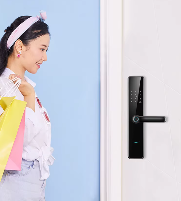 Умный дверной замок KHS-8018 оснащен передовыми технологиями, обеспечивающими максимальную безопасность. Способы открытия включают сканер отпечатков пальцев, кодовый ввод, ключ-карту и голосовое управление. Для экстренных случаев предусмотрен механический ключ и порт Micro-USB для аварийного питания. Замок управляется через приложение Tuya Wifi app, предоставляя удобный контроль доступа с мобильного устройства.