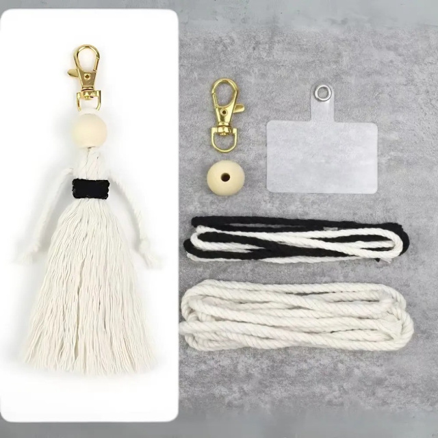 Набор макраме для рукоделия и плетения брелока «Куколка» для ключей и аксессуаров белый с черным