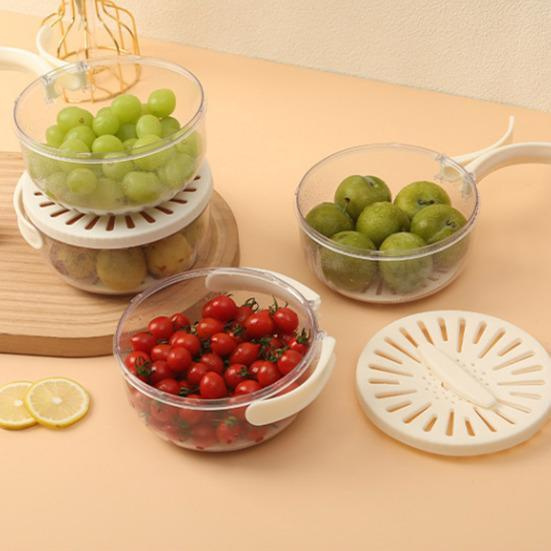 Конструкция скрытой ручки этой сливной корзины позволяет легко переносить и хранить, не занимая много места в холодильнике. Его крепкая конструкция и складная ручка делают его удобным для ежедневного использования. Идеально подходит для очистки мелких фруктов и овощей, таких как ягоды и помидоры, полая конструкция обеспечивает эффективный дренаж воды, сохраняя вашу пищу чистой и готовой к употреблению.