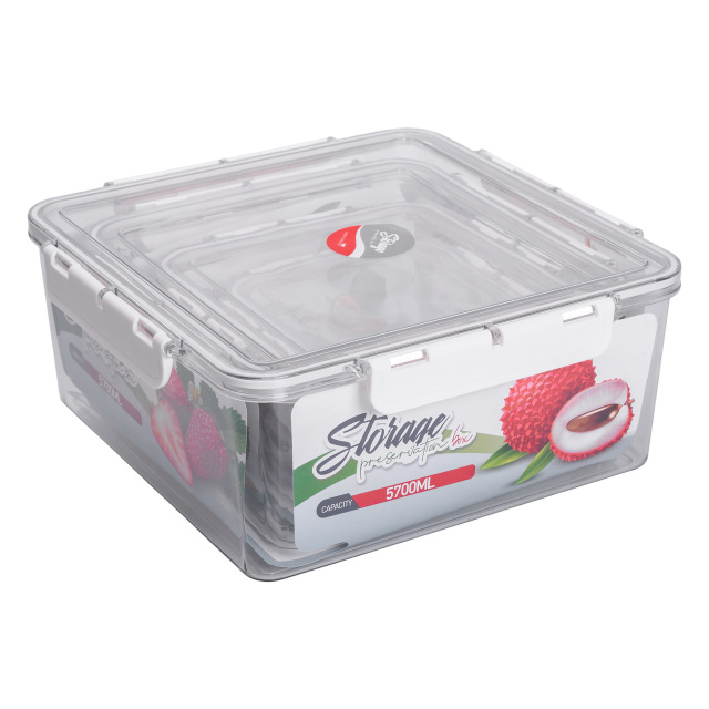 Универсальный и практичный набор пластиковых контейнеров для хранения продуктов. Идеально подойдёт для кухни, холодильника, пикников, заморозки или повседневного использования. Прочные пластиковые стенки и герметичные крышки на защёлках обеспечивают длительное хранение без запахов и протеканий. Основные характеристики: Материал: пластик; Тип крышек: герметичные, с надёжными защёлками по бокам; Количество в наборе: 4 шт. Объём и размер: 700 мл – 13×13×5 см; 1.7 л – 16.5×16.5×6.5 см; 3.3 л – 21×21×8 см; 5.7 л – 25×25×10 см. Особенности: Герметичность — защёлки плотно фиксируют крышку, предотвращая пролив; Прозрачные стенки — удобно видеть содержимое; Компактно складываются друг в друга для хранения; Идеальны для хранения еды, закусок, соусов, фруктов, овощей, круп и т. д.. Этот набор контейнеров для еды станет незаменимым помощником на кухне. Благодаря герметичным крышкам, различным объёмам и прочному материалу, вы легко сохраните свежесть продуктов и сэкономите пространство. Отличное решение для дома, офиса, пикников и хранения заготовок.