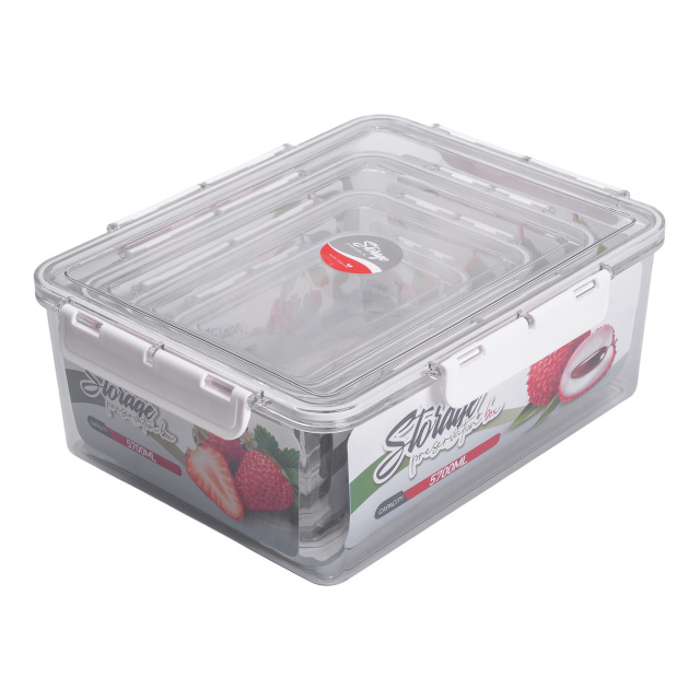 Универсальный и практичный набор пластиковых контейнеров для хранения продуктов. Идеально подойдёт для кухни, холодильника, пикников, заморозки или повседневного использования. Прочные пластиковые стенки и герметичные крышки на защёлках обеспечивают длительное хранение без запахов и протеканий. Основные характеристики: Материал: пластик; Тип крышек: герметичные, с надёжными защёлками по бокам; Количество в наборе: 4 шт. Объём и размер: 700 мл – 15.5×9.5×5 см; 1.7 л – 20×14×7 см; 3.3 л – 24×18×8.5 см; 5.7 л – 29×22.5×10 см. Особенности: Герметичность — защёлки плотно фиксируют крышку, предотвращая пролив; Прозрачные стенки — удобно видеть содержимое; Компактно складываются друг в друга для хранения; Идеальны для хранения еды, закусок, соусов, фруктов, овощей, круп и т. д. Этот набор контейнеров для еды станет незаменимым помощником на кухне. Благодаря герметичным крышкам, различным объёмам и прочному материалу, вы легко сохраните свежесть продуктов и сэкономите пространство. Отличное решение для дома, офиса, пикников и хранения заготовок.