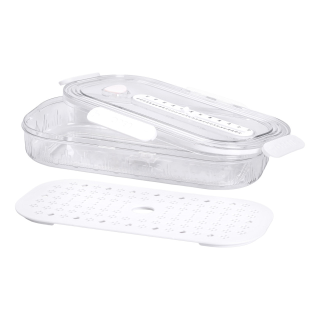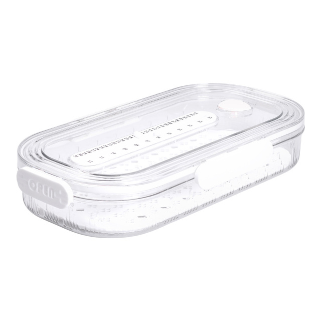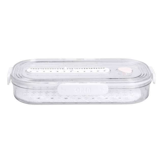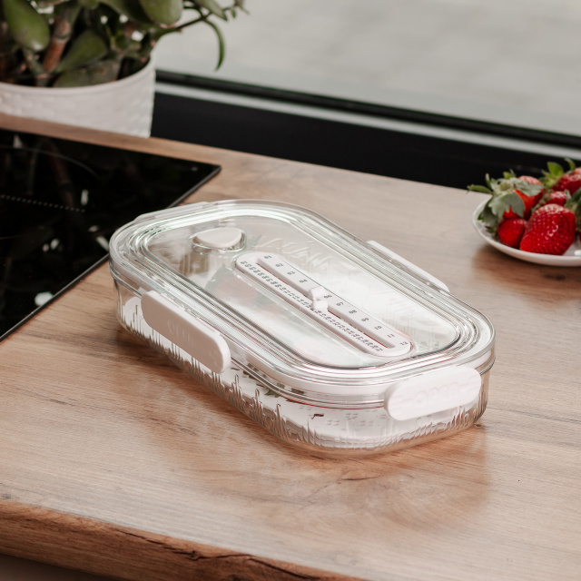 Правильное хранение продуктов - это не только вопрос удобства, но и длительного сохранения свежести. Прямоугольный пластиковый контейнер с герметичной крышкой помогает упорядочить холодильник или кухонный шкаф, создавая опрятное пространство для пищевых продуктов. Его форма оптимально подходит для экономного использования места. Основные характеристики: Размер: 32.5х17.5х6 см; Внутренний размер: 30х15х4.5 см; Объем: 1 л; Материал: пластик. Особенности: Герметичная крышка на защёлках — надёжно закрывается, защищает от запахов и проливов; Клапан вентиляции с регулировкой влажности — создаёт оптимальные условия для разных типов продуктов; Внутренняя вставка-сито — отводит лишнюю влагу, предотвращая порчу пищи; Прозрачный пластиковый корпус — видно содержимое без открытия; Индикатор даты хранения — удобно контролировать свежесть продуктов. Контейнер изготовлен из прозрачного пищевого пластика, что позволяет легко видеть содержимое без открывания. Особое внимание стоит обратить на крышку - она оснащена силиконовой прокладкой, которая обеспечивает надежное прилегание и герметичность. Это важно для сохранения свежести овощей, фруктов или готовых блюд. Кроме того, удобные защелки по бокам позволяют плотно закрывать крышку, предотвращая случайное открывание во время хранения или транспортировки. Контейнер легко мыть вручную или в посудомоечной машине. Он станет практичным дополнением к ежедневному кухонному использованию - без лишних деталей, с акцентом на функциональность.