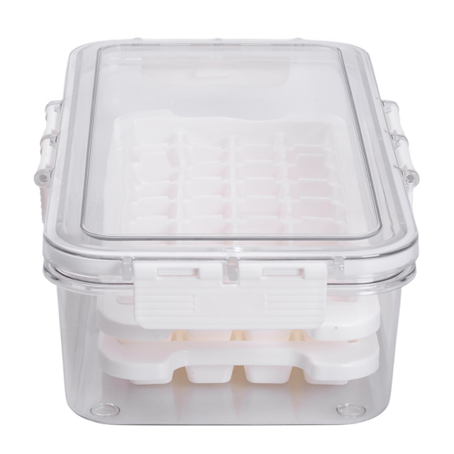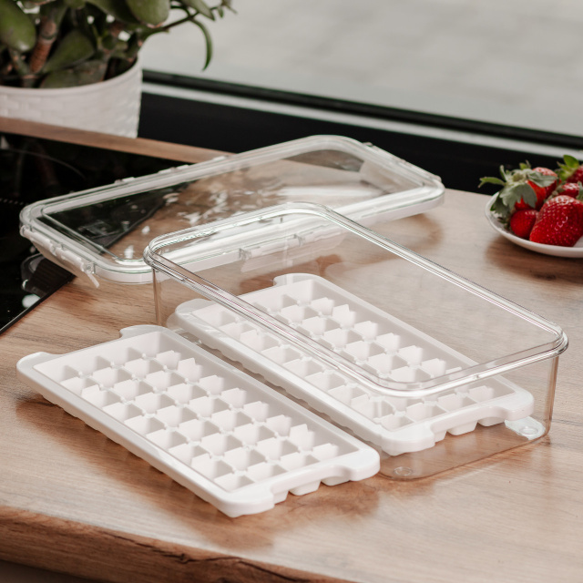 Пластиковый контейнер с ячейками предназначен для удобного замораживания фруктов, овощей, ягод, зеленой массы или кубиков льда. Благодаря разделенным отсекам можно хранить небольшие порции продуктов отдельно, не смешивая вкусы и запахи. Прозрачная крышка плотно закрывается с помощью боковых фиксаторов и имеет встроенные ручки, облегчающие перемещение контейнера даже с содержимым. Основные характеристики контейнера для льда с крышкой: Размер контейнера: 30.5х16х7.5 см; Внутренний размер контейнера: 28.5х14 см; Размер отсека: 20.5х6.5х5 см; Объем контейнера: 1 л; Количество отсеков для льда: 2х36 шт; Размер отсеков для льда: 2х2х1.5 см; Материал: пластик. Контейнер изготовлен из прочного пластика, пригодного для низкотемпературного хранения, без риска деформации. Компактная прямоугольная форма позволяет удобно разместить его в морозильной камере. Такой формат подходит как для длительного хранения сезонных заготовок, так и для ежедневного использования. Контейнер легко моется и повторно используется. Его можно использовать не только для заморозки, но и для порционного хранения готовых продуктов. Ячейки помогают экономно распределять порции и лучше организовать пространство в морозилке.