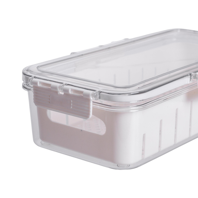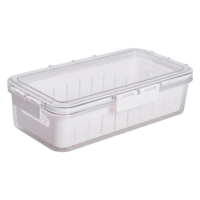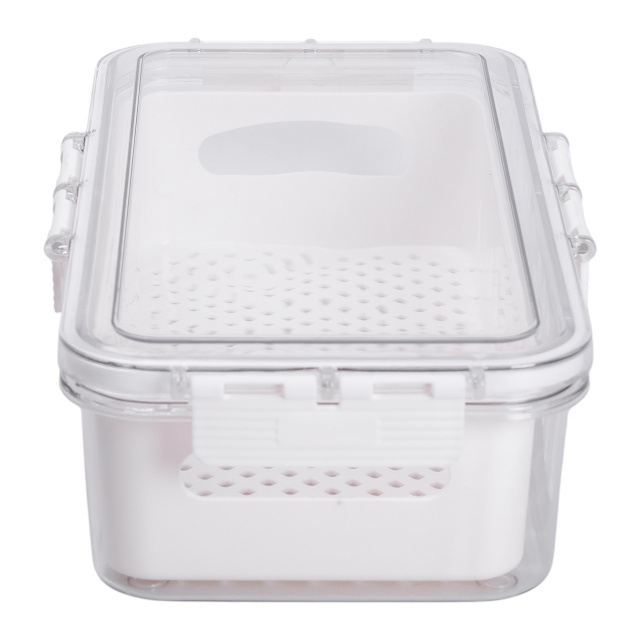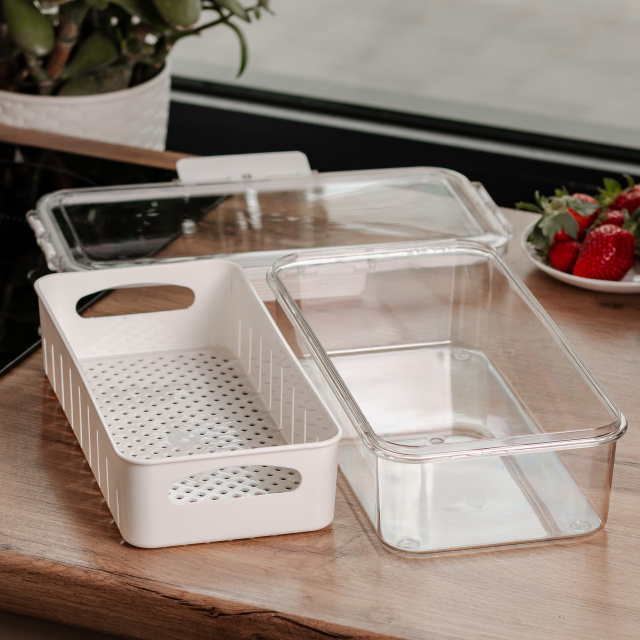 Контейнер изготовлен из прозрачного пищевого пластика, что позволяет легко видеть содержимое без открывания. Внутри размещена съемная подставка, которая обеспечивает вентиляцию и отвод лишней влаги - это позволяет дольше сохранять свежесть овощей, фруктов, зелени или готовых блюд. Герметичная крышка плотно закрывается, предотвращая протекание и сохранение запахов внутри. Основные характеристики: Размер: 31х16х7.5 см; Внутренний размер: 28.5х14х 6.5 см; Объем: 2 л; Материал: пластик. Такой контейнер удобен как для хранения продуктов в холодильнике, так и для транспортировки пищи. Плоская форма позволяет компактно размещать несколько контейнеров друг на друге, что особенно практично при ограниченном пространстве. Пластик не впитывает запахов, устойчив к пятнам и легко очищается как вручную, так и в посудомоечной машине. Контейнер можно использовать ежедневно для различных типов продуктов.