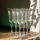 Набор бокалов изготовлен из прозрачного стекла, украшенного рельефным узором в виде геометрических граней. Вытянутая чаша плавно переходит в изящную
