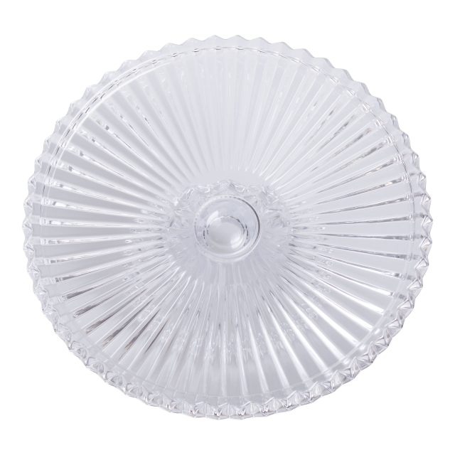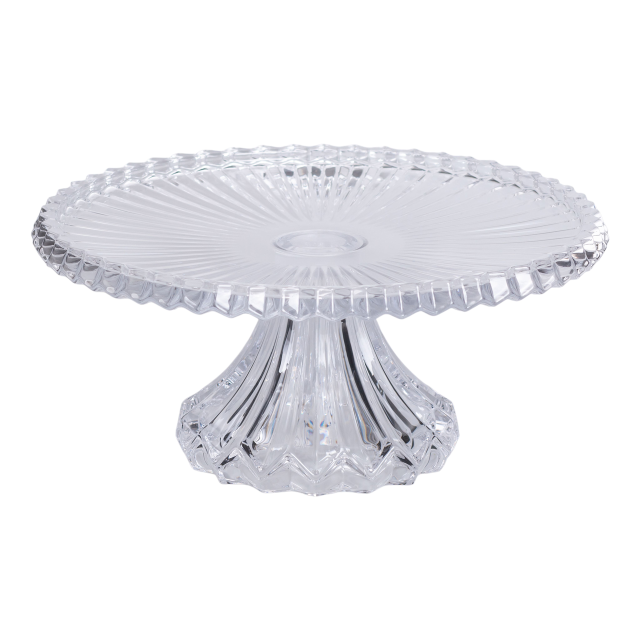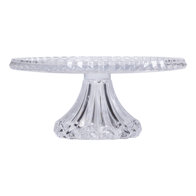 Эта тортовница на ножке изготовлена из прозрачного стекла с имитацией хрустального узора, создающего эффект лучистого сияния. Изделие имеет круглую форму с рельефным краем и гладкой центральной частью для удобного размещения тортов, пирогов или другой выпечки. Конструкция предусматривает приподнятое основание, которое не только придает изделию устойчивости, но и позволяет эффектно презентовать десерты на праздничном столе. Основные характеристики тортовницы: Диаметр: 25 см; Высота: 12 см; Высота ножки: 10 см; Материал: стекло. Особенности тортовницы: Выполнена из прочного прозрачного стекла; Устойчивое и надёжное основание; Идеальный размер для подачи тортов, пирожных, капкейков, фруктов и других десертов; Подходит как для домашнего использования, так и для торжественных мероприятий, свадеб и банкетов. Диаметр поверхности тортовницы обеспечивает достаточно места для большого торта, а высота ножки создает дополнительный визуальный акцент. Материал - закаленное стекло, которое не имеет запаха, легко моется и не впитывает цветные пигменты. Форма ножки коническая с рельефным узором, который повторяет геометрию краев, создавая целостное дизайнерское решение. Такая тортовница подходит как для ежедневного использования, так и для сервировки на торжества. Благодаря классическому прозрачному оформлению она хорошо сочетается с любой посудой. Оптимальный выбор для заведений питания или домашнего пользования, где важно не только функциональное назначение, но и визуальная презентация десерта.