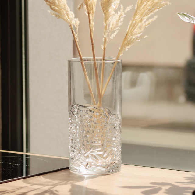 Прозрачная ваза изготовлена из высококачественного стекла, ее особенностью является декоративное тиснение в нижней части, что добавляет объема и текстурности внешнему виду. Изделие имеет гладкую округлую форму без острых углов и утолщенное дно для стабильности. Основные характеристики вазы для цветов Материал: стекло; Диаметр: 11 см; Высота: 25 см; Глубина: 21 см; Объем: 1.8 л. Основные преимущества стеклянной вазы Ваза подходит для разных типов цветов, а также для сухоцветов. Ваза выполнена из высококачественного стекла, что гарантирует её прочность и долговечность. Универсальность дизайна позволяет вазе гармонично вписаться в любую обстановку, будь то современная гостиная или классический офис. Благодаря сочетанию прозрачности и рельефной обработки ваза интересно взаимодействует со светом, создавая оригинальные блики. Она подходит для живых цветов, сухоцветов или как отдельный элемент декора, гармонично вписывается в современные и классические интерьеры. Практичная и эстетичная ваза подходит для ежедневного использования и праздничного оформления. За ней легко ухаживать: достаточно промыть мягкой губкой или в посудомоечной машине без агрессивных моющих средств.