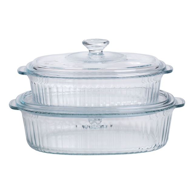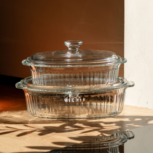 Набор стеклянных форм для запекания из боросиликатного стекла — это универсальное и эстетичное решение для приготовления разнообразных блюд в духовке. Благодаря высокой термостойкости и прочности формы подходят как для повседневного использования, так и для праздничной подачи на стол. Характеристики стеклянных форм для запекания тип изделия: жаропрочные формы с крышками; материал: боросиликатное стекло; объём: 2.8 л и 1.8 л; размер первой формы: 26×19×13.5 см (без крышки 8 см); размер второй формы: 24×18×11.5 см (без крышки 7 см); форма: овальная, с рельефными стенками и ручками; подходит для: духовки, микроволновки, холодильника, посудомоечной машины. Преимущества набора Жаропрочное стекло: выдерживает высокие температуры и резкие перепады. Два объёма: удобно использовать для различных по размеру блюд. Крышки в комплекте: сохраняют тепло и аромат во время запекания. Прозрачность: позволяет следить за процессом приготовления. Гигиеничность: стекло не впитывает запахи и легко моется. Эстетичность: формы подходят для сервировки прямо на столе. Долговечность: устойчивы к царапинам и бытовым повреждениям. Набор стеклянных форм для запекания — отличный выбор для запеканок, мяса, овощей, рыбы и других блюд. Подходит для использования в духовке и подачи горячих блюд прямо на стол. Купить формы для запекания из боросиликатного стекла объёмом 1.8 л и 2.8 л можно уже сегодня с доставкой по всей Украине. Надёжная упаковка и гарантированное качество каждой единицы товара. Готовьте удобно, вкусно и красиво вместе с термостойкими формами премиум-класса.