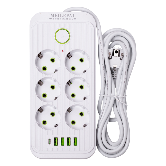 Функциональный сетевой удлинитель F06U/3M — это надёжное решение для подключения сразу шести устройств и одновременной зарядки гаджетов через 4 порта (USB и Type-C). Белый корпус, продуманная компоновка и круглая кнопка питания с LED-индикатором делают его идеальным выбором для дома, офиса или мастерской. Характеристики сетевого удлинителя F06U тип: сетевой фильтр удлинитель с USB-портами и Type-C; количество розеток: 6 шт с заземлением (EU стандарт); количество USB-портов: 4 шт (стандарт 5V), 1 Type-C; размер сетевого фильтра: 22.5×10×4 см; длина кабеля: 3 метра; переключатель: круглая кнопка с подсветкой; материал корпуса: термостойкий ABS-пластик; напряжение: 220–250 В, защита от перегрузок. Преимущества фильтра F06U с USB Удобное размещение — 6 розеток расположены вертикально, не мешают друг другу. Зарядка гаджетов — 4 USB-порта позволяют одновременно заряжать смартфоны, планшеты и другие устройства. Надёжность и защита — фильтр устойчив к скачкам напряжения и перегреву. Компактность и эстетика — белый цвет легко впишется в любой интерьер. Быстрое отключение — кнопка питания полностью обесточивает подключённые устройства одним нажатием. Особенно полезен при перебоях с электричеством: позволяет безопасно отключать оборудование и продолжать зарядку USB-гаджетов без использования адаптеров. Ваши устройства всегда под контролем. Купить сетевой удлинитель 3м с USB можно с доставкой по всей Украине. Быстрая отправка, надёжная упаковка, оплата при получении. Закажите сетевой фильтр F06U и получите универсальное, мощное и эстетичное решение для вашей техники и зарядных устройств.