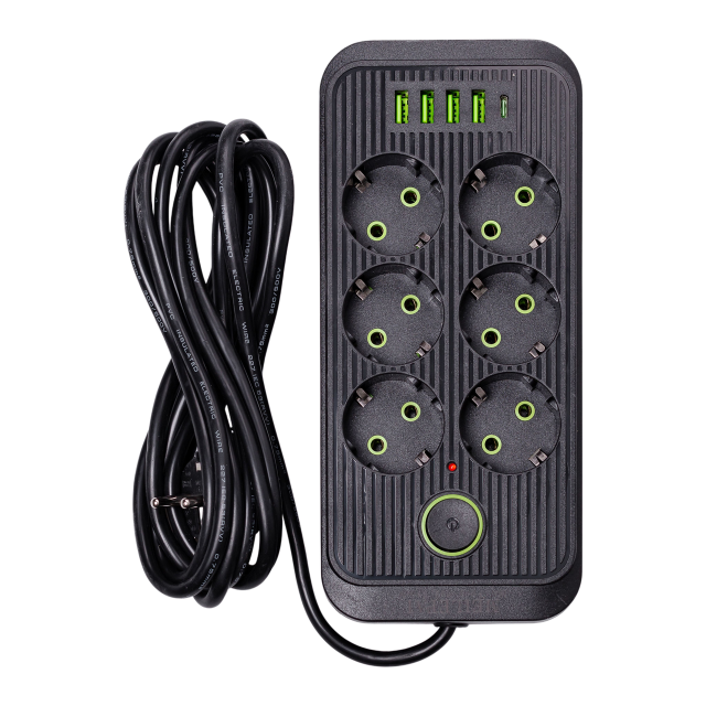 Функциональный сетевой удлинитель F06U/3M — это надёжное решение для подключения сразу шести устройств и одновременной зарядки гаджетов через 5 портов (USB и Type-C). Черный корпус, продуманная компоновка и круглая кнопка питания с LED-индикатором делают его идеальным выбором для дома, офиса или мастерской. Характеристики сетевого удлинителя F06U тип: сетевой фильтр удлинитель с USB-портами и Type-C; количество розеток: 6 шт с заземлением (EU стандарт); количество USB-портов: 4 шт (стандарт 5V), 1 Type-C; размер сетевого фильтра: 23×10×5 см; длина кабеля: 3 метра; переключатель: круглая кнопка с подсветкой; материал корпуса: термостойкий ABS-пластик; напряжение: 220–250 В, защита от перегрузок. Преимущества фильтра F06U с USB Удобное размещение — 6 розеток расположены вертикально, не мешают друг другу. Зарядка гаджетов — 4 USB-порта позволяют одновременно заряжать смартфоны, планшеты и другие устройства. Надёжность и защита — фильтр устойчив к скачкам напряжения и перегреву. Компактность и эстетика — черный цвет легко впишется в любой интерьер. Быстрое отключение — кнопка питания полностью обесточивает подключённые устройства одним нажатием. Особенно полезен при перебоях с электричеством: позволяет безопасно отключать оборудование и продолжать зарядку USB-гаджетов без использования адаптеров. Ваши устройства всегда под контролем. Купить сетевой удлинитель 3м с USB можно с доставкой по всей Украине. Быстрая отправка, надёжная упаковка, оплата при получении. Закажите сетевой фильтр F06U и получите универсальное, мощное и эстетичное решение для вашей техники и зарядных устройств.