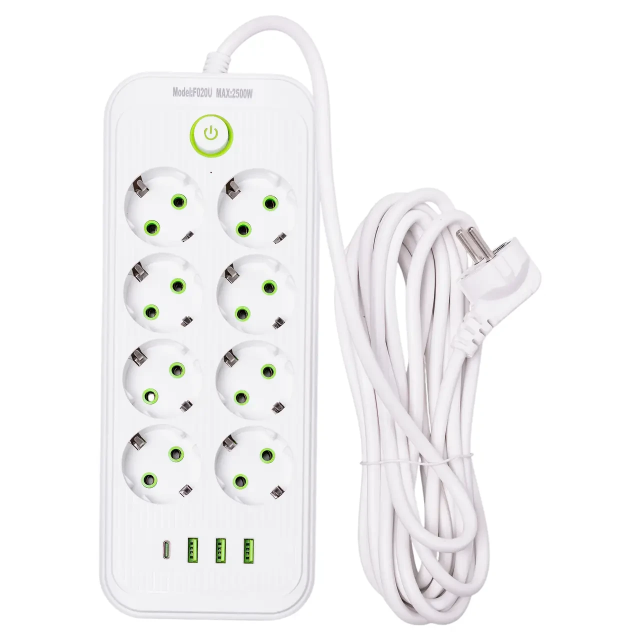 Функциональный и стильный сетевой удлинитель F20U с 8 розетками, 4 портами USB и Type-C — это оптимальное решение для подключения всей необходимой техники в доме или офисе. Черный корпус, компактное расположение розеток и круглая кнопка питания с LED-индикацией делают его удобным, безопасным и эстетичным выбором для повседневного использования. Характеристики сетевого удлинителя F20U тип: сетевой фильтр удлинитель с USB и Type-C; количество розеток: 8 шт с заземлением; количество портов: 3 шт USB, 1 шт Type-C; длина кабеля: 4.7 метров; размер сетевого фильтра: 27×11×4 см; переключатель питания: кнопка включения/выключения на корпусе; материал: термостойкий ABS-пластик; универсальный разъём: подходит для бытовых и офисных приборов. Преимущества фильтра F20U с USB Подключение до 12 устройств одновременно — 8 розеток + 4 USB-порта. Зарядка гаджетов без адаптеров — 3 USB + 1 Type-C. Надёжная защита от скачков напряжения и коротких замыканий. Эстетичный дизайн — впишется в любой интерьер, от дома до офиса. Кнопка полного отключения — управление питанием одним нажатием. Незаменим в условиях перебоев с электроэнергией: фильтр F20U позволяет безопасно отключить всё оборудование от сети и продолжать зарядку мобильных устройств даже при нестабильной подаче тока. Купить сетевой удлинитель с USB можно с доставкой по всей Украине. Быстрая отправка и надёжная упаковка. Закажите сетевой фильтр F20U уже сейчас — обеспечьте комфорт и порядок в электропитании ваших устройств, дома или на работе.