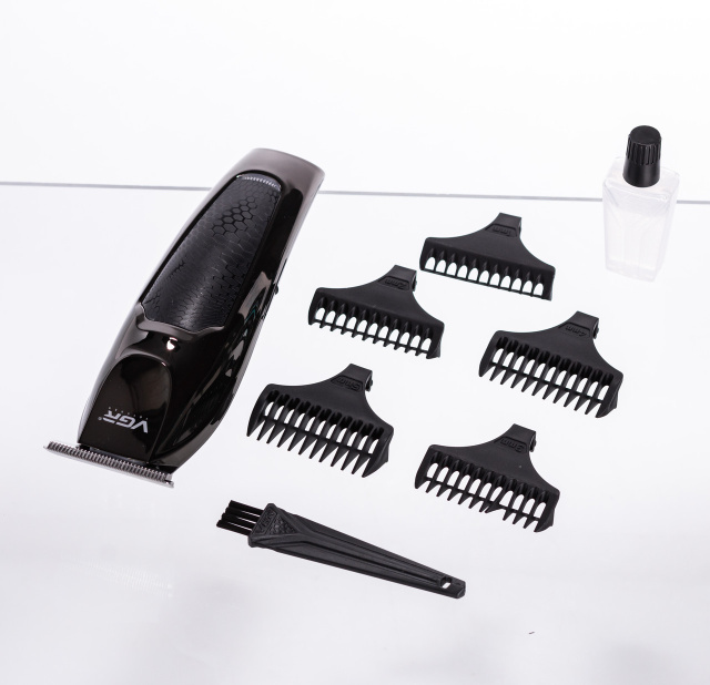 Беспроводная машинка для стрижки волос VGR V-030 — это надёжный и функциональный триммер, разработанный для профессионального и домашнего использования. Оснащённый острыми лезвиями из нержавеющей стали и мощным мотором с низким уровнем шума, он обеспечивает чистую и точную стрижку, моделирование бороды и окантовку даже в труднодоступных местах. Характеристики триммера VGR V-030 тип устройства: триммер и машинка для стрижки; мощность: 5 В; тип питания: литий-ионный аккумулятор + USB-зарядка; время автономной работы: до 120 минут; время зарядки: 2 часа; ёмкость аккумулятора: 600 мАч; 5 насадок: 1, 2, 3, 4, 5 мм; ширина лезвия: 40 мм; лезвия: быстросъёмные, T-образные, из нержавеющей стали; индикатор зарядки: зелёный светодиод; размер устройства: 15.5×4.5×4 см. Преимущества машинки VGR V-030 Точная и безопасная стрижка: благодаря T-образному лезвию и лазерной заточке. Беспроводной режим: до 120 минут работы без подзарядки. USB-зарядка: возможность зарядки от розетки, ноутбука или power bank. Комплект насадок: 5 гребней (1–5 мм) для индивидуального стиля. Низкий уровень шума: тихий мотор идеально подходит для домашнего использования. Удобство ухода: ножевой блок можно мыть, в комплекте масло и щётка. Прочный корпус: выполнен из ударостойкого пластика. VGR V-030 — универсальное решение для мужчин, которые ценят точность, эргономику и чистоту в каждой детали. Подходит для бороды, бакенбардов, окантовки и стрижки волос. Закажите триммер VGR V-030 с доставкой по всей Украине. Идеально подойдёт для личного использования или в качестве практичного подарка мужчине. Данный товар находится в герметичной блистерной упаковке, поэтому, обязательно проверьте целостность блистера при получении на почте. В случае обнаружения дефектов упаковки, пожалуйста, сообщите нам сразу для замены товара. После нарушения целостности блистера товар не подлежит возврату. При обнаружении у товара заводских неисправностей вы можете вернуть или заменить его в течение 14 дней.