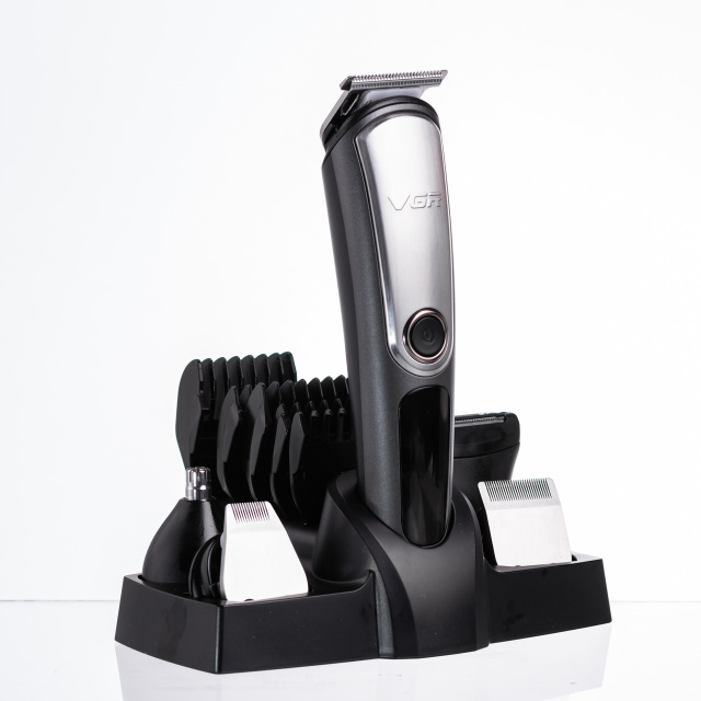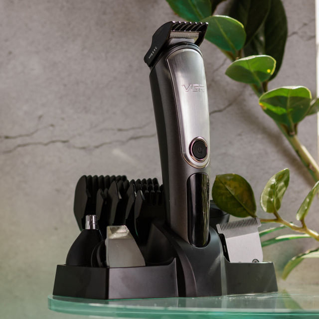 Набор для стрижки VGR V-105 5 в 1 — это универсальное устройство, которое заменит сразу несколько приборов для ухода за внешностью. Подходит для подравнивания волос, ухода за бородой, удаления нежелательных волос в носу и ушах, а также для точного моделирования формы бороды и усов. Влагозащита уровня IPX6 позволяет использовать триммер даже в душе, а современный литиевый аккумулятор обеспечивает до 60 минут автономной работы. Характеристики набора VGR V-105 тип устройства: триммер, машинка, бритва 5 в 1; модель: VGR V-105; влагозащита: IPX6 — подходит для использования в душе; питание: аккумулятор (зарядка от USB); тип аккумулятора: Li-Ion, 500 мАч; время автономной работы: до 60 минут; время зарядки: 1.5 часа; размер: 17×4×4 см; индикация работы и блокировка на дисплее; мощность: 5 В; удобная подставка в комплекте. Комплектация 5 в 1 Полноразмерный триммер для стрижки волос. Насадка для дизайна и стрижки узоров. Триммер для носа и ушей. Бритва для лица и тела. Точный триммер для контуров и детализации. Регулируемая насадка 1–10 мм. 5 насадок-гребней: 3 мм, 6 мм, 9 мм, 12 мм, 15 мм. USB-кабель, масло, щетка и гребень. Подставка и заводская упаковка. Триммер VGR V-105 — это идеальный выбор для мужчин, которые ценят порядок, стиль и мобильность. Один прибор — множество функций, аккуратный дизайн, влагозащита и надёжная работа в любых условиях. Закажите VGR V-105 с доставкой по Украине прямо сейчас и получите профессиональный уход в домашних условиях. Надёжная упаковка, гарантия качества и быстрая отправка — всё для вашего комфорта. Данный товар находится в герметичной блистерной упаковке, поэтому, обязательно проверьте целостность блистера при получении на почте. В случае обнаружения дефектов упаковки, пожалуйста, сообщите нам сразу для замены товара. После нарушения целостности блистера товар не подлежит возврату. При обнаружении у товара заводских неисправностей вы можете вернуть или заменить его в течение 14 дней.