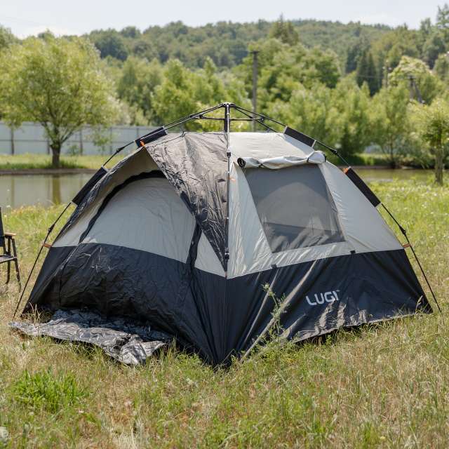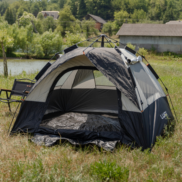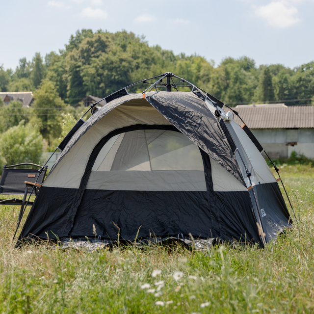 Трехместная палатка с автоматическим каркасом — отличное решение для комфортного отдыха на природе, кемпинга или семейных поездок. Благодаря встроенному механизму автоматической установки, сборка занимает всего пару минут и не требует особых усилий. Палатка легко раскладывается и быстро готова к использованию, а её компактный вес делает транспортировку простой и удобной. Главной особенностью модели является круговая вентиляция 360°: по периметру расположены большие окна с москитными сетками, которые обеспечивают отличную циркуляцию воздуха и защищают от насекомых. Вход также оснащен сеткой, поэтому внутри сохраняется комфортная температура даже в жаркую погоду. Форма конструкции обеспечивает не только больше внутреннего пространства, но и повышенную устойчивость к порывам ветра. Углы распределены равномерно, что делает палатку более стабильной и надёжной в любых погодных условиях. Основные характеристики палатки для туризма: Количество спальных мест: 3; Внешний размер палатки: 200×195×140 см; Внутренний размер палатки: 185×180×120 см; Размер в сложенном состоянии: 72×17×17см; Количество входов и окон: 1 вход, 3 окна; Внешний материал: оксфорд; Материал пола: ПЭ тарпаулин; Внутренний материал палатки: оксфорд; Плотность материала: 180 Т; Материал каркаса: фибергласс 7.9 мм; Форма: полусфера; Система раскладывания: автоматическая; Сезонность: лето; Наличие чехла: есть; Наличие кармана: есть; Комплектация: палатка, 10 грунтовых колышков, 6 шнуров, чехол. Обратите внимание Проверяйте целостность тент палатки и элементов конструкции перед каждым использованием для обеспечения собственной безопасности. Устанавливайте палатку на ровном участке без камней, веток и острых предметов, которые могут повредить ткань. Устанавливайте тент палатку на безопасном расстоянии от костра. Для того, чтобы избежать дискомфорта во время сна, для установки выбирайте максимально плоский участок, покрытый травой или песком. Если местность холмистая, ложитесь ногами вниз по склону. Если во время кемпинга собирается дождь, выкопайте дренажную канаву вокруг палатки для отведения воды. Канава должна располагаться максимально близко ко внешнему краю палатки. Для дополнительной влагозащиты используйте футпринт. Уход за палаткой Очистка палатки от загрязнений после использования - важный аспект, который непосредственно влияет на срок и качество ее службы. Чтобы сохранить снаряжение: Тщательно очистите дно и нижнюю часть палатки от песка и загрязнений. Во избежание появления плесени не складывайте палатку до полного высыхания или просушите ткань при первом удобном случае. Не используйте моющие средства для очистки во избежание утраты водонепроницаемых свойств. Не стирайте палатку в стиральной машине. Храните палатку в сухом месте.