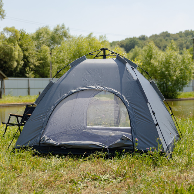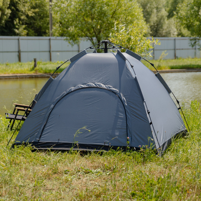 Автоматическая палатка – это идеальное решение для тех, кто ценит комфорт и удобство во время отдыха на природе. С этой палаткой вы можете насладиться незабываемыми моментами отдыха на природе! Она станет отличным выбором для семейного кемпинга, пеших походов, велосипедных путешествий, фестивалей и других событий. Основные характеристики палатки для туризма: Количество спальных мест: 2 ; Внешний размер палатки: 200×200×140 см ; Внутренний размер палатки: 175×175×120 см; Размер в сложенном состоянии: 72×15×15 см; Внешний материал: оксфорд; Материал пола: оксфорд; Внутренний материал палатки: оксфорд; Плотность материала: 180 Т; Материал каркаса: фибергласс 7.9 мм; Форма: полусфера; Система раскладывания: автоматическая; Сезонность: лето; Наличие чехла: есть; Наличие кармана: есть; Комплектация: палатка, 4 грунтовых колышка, чехол для транспортировки. Инструкция по эксплуатации автоматической палатки Этапы установки палатки: Отстегните крепежный ремень и уложите палатку основанием на землю или футпринт. Найдите верхнюю часть каркаса, поставьте ее вертикально, затем последовательно разверните четыре угла палатки. Найдите две симметричные дуги и приподнимите их чтобы купол палатки полностью раскрылся. Прижмите дуги до характерного щелчка. Вбейте грунтовые колышки по периметру палатки и натяните ветрозащитные шнуры. Палатка готова к использованию. Этапы складывания палатки: Вытяните грунтовые колышки и снимите ветрозащитные шнуры. Найдите перпендикулярные дуги, потяните вверх обеими руками и закройте каркас. Сложите верхнюю часть каркаса Найдите места соединения элементов дуги, разъедините их и поочередно сложите по направлению к центру. Ровно сложите углы палатки по швам и зафиксируйте ее крепежным ремнем. Это необходимо чтобы на материале не появлялись заломы. Сложите палатку и аксессуары в упаковку. Обратите внимание Проверяйте целостность тент палатки и элементов конструкции перед каждым использованием для обеспечения собственной безопасности. Устанавливайте палатку на ровном участке без камней, веток и острых предметов, которые могут повредить ткань. Устанавливайте тент палатку на безопасном расстоянии от костра. Для того, чтобы избежать дискомфорта во время сна, для установки выбирайте максимально плоский участок, покрытый травой или песком. Если местность холмистая, ложитесь ногами вниз по склону. Если во время кемпинга собирается дождь, выкопайте дренажную канаву вокруг палатки для отведения воды. Канава должна располагаться максимально близко ко внешнему краю палатки. Для дополнительной влагозащиты используйте футпринт. Уход за палаткой Очистка палатки от загрязнений после использования - важный аспект, который непосредственно влияет на срок и качество ее службы. Чтобы сохранить снаряжение: Тщательно очистите дно и нижнюю часть палатки от песка и загрязнений. Во избежание появления плесени не складывайте палатку до полного высыхания или просушите ткань при первом удобном случае. Не используйте моющие средства для очистки во избежание утраты водонепроницаемых свойств. Не стирайте палатку в стиральной машине. Храните палатку в сухом месте.