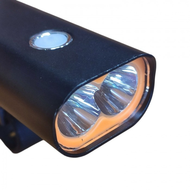 Мощный качественный Led фонарь для установки на руль велосипеда. Крепится на руль с помощью резинового хомута с возможностью регулировки под необходимый размер. Корпус фары изготовлен из алюминия окрашенного в чёрный цвет. За счет 2 диодов фара имеет множество режимов работы ближний, дальний, комбинированный, экономный. Возле кнопки включения расположен индикатор со шкалой заряда фары с синей подсветкой. В корпусе размещен АКБ 18650 - 2400 МАН. Время свечения 4-8 часов. Фонарь оснащен как микро usb для зарядки, так и usb - для зарядки внешних устройств. Если ваш телефон в дороге окажется разряжен, вы всегда сможете зарядить его от фонаря. Снимите ремешок и получите отличный фонарь в руку.