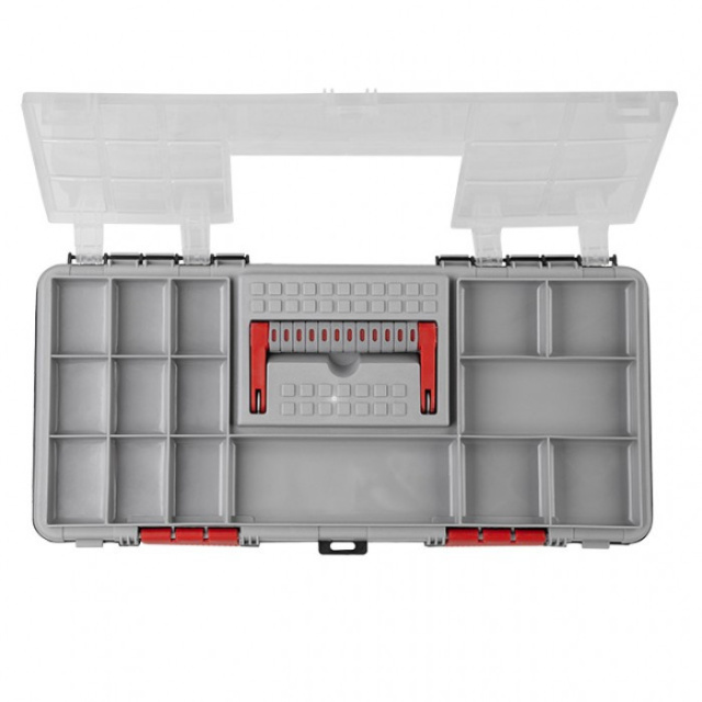 Комплект ящиков для инструментов ТМ INTERTOOL BX-0003 состоит из 3 ящиков: Малого размера – ВХ-0125 13", Среднего – ВХ-0016 16", Большого – ВХ-0205 20.5. Ящики изготовлены из ударопрочного пластика, без применения металлических деталей, что обеспечивает им сравнительно легкий собственный вес и облегчает транспортировку тяжелого инструмента. Оснащены объемным органайзером с прозрачной крышкой, в которых удобно разместить снасти для рыбалки, или хранить мелкие детали и расходные материалы. Закрываются на пластиковые замки. Для транспортировки инструмента предусмотрена пластиковая ручка утапливаемая в крышке, что очень удобно при хранении. В комплектации каждого ящика предусмотрен съемный лоток для хранения губцевых и других ручных часто используемых инструментов и мелких расходных материалов.