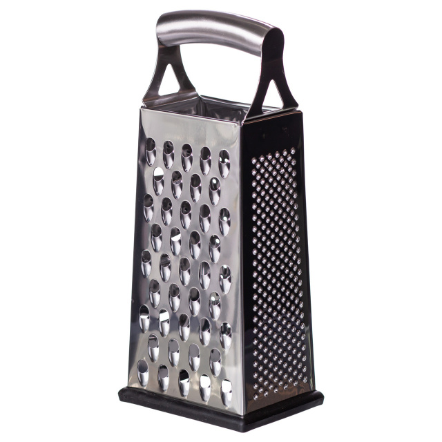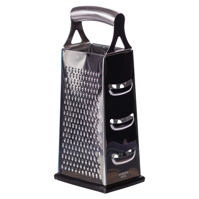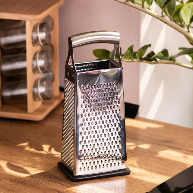 Четырехсторонняя кухонная тёрка — это универсальный и незаменимый инструмент для каждой кухни. Её практичность и многофункциональность делают её идеальным решением для повседневной кулинарии: от приготовления салатов до натирания сыра для запеканок и десертов. Благодаря четырём разным сторонам, тёрка справляется с широким спектром задач — измельчает, натирает, шинкует как ровными, так и волнистыми ломтиками. Это не просто кухонный аксессуар, а полноценный помощник на каждой стадии приготовления пищи. Изготовлена из высококачественной нержавеющей стали, устойчива к коррозии и сохраняет свою остроту длительное время. Элегантный корпус придаёт изделию стильный и современный вид, который будет эстетично смотреться на любой кухне. Классическая металлическая ручка обеспечивает удобный захват, а прочная конструкция гарантирует долговечность. Основные характеристики ручной терки из нержавейки: Материал терки: нержавеющая сталь; Материал ручки: нержавеющая сталь; Размер: 11×8.5×26 см; Количество рабочих сторон: 4; Ширина рабочей поверхности: 8 см; Длина рабочей поверхности: 15 см; Противоскользящее основание: да. Особенности металлической терки для овощей: 4 рабочие стороны; Удобная металлическая ручка для комфортного захвата; Эстетичный корпус; Подходит для овощей, сыра, шоколада, фруктов, орехов и др.; Простая очистка — можно мыть вручную или в посудомоечной машине. Четырехсторонняя терка — это сочетание стиля, качества и функциональности. Она станет незаменимым помощником на кухне, с лёгкостью справляясь с ежедневными задачами по приготовлению пищи. Независимо от того, готовите ли вы дома или работаете на профессиональной кухне — такая тёрка обеспечит комфорт и эффективность в работе.