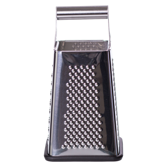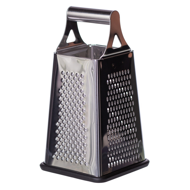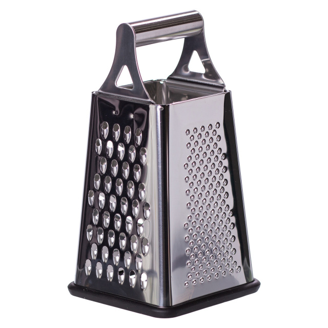 Четырехсторонняя кухонная тёрка — это универсальный и незаменимый инструмент для каждой кухни. Её практичность и многофункциональность делают её идеальным решением для повседневной кулинарии: от приготовления салатов до натирания сыра для запеканок и десертов. Благодаря четырём разным сторонам, тёрка справляется с широким спектром задач — измельчает, натирает, шинкует как ровными, так и волнистыми ломтиками. Это не просто кухонный аксессуар, а полноценный помощник на каждой стадии приготовления пищи. Изготовлена из высококачественной нержавеющей стали, устойчива к коррозии и сохраняет свою остроту длительное время. Элегантный корпус придаёт изделию стильный и современный вид, который будет эстетично смотреться на любой кухне. Классическая металлическая ручка обеспечивает удобный захват, а прочная конструкция гарантирует долговечность. Основные характеристики ручной терки из нержавейки: Материал терки: нержавеющая сталь; Материал ручки: нержавеющая сталь; Размер: 13×13×24.5 см; Количество рабочих сторон: 4; Ширина рабочей поверхности: 6 см; Длина рабочей поверхности: 13 см; Противоскользящее основание: есть. Особенности металлической терки для овощей и фруктов: 4 рабочие стороны; Удобная металлическая ручка для комфортного захвата; Прочный и эстетичный корпус; Подходит для овощей, сыра, шоколада, фруктов, орехов и др.; Простая очистка — можно мыть вручную или в посудомоечной машине. Четырехсторонняя терка из нержавеки — это сочетание стиля, качества и функциональности. Она станет незаменимым помощником на кухне, с лёгкостью справляясь с ежедневными задачами по приготовлению пищи. Независимо от того, готовите ли вы дома или работаете на профессиональной кухне — такая тёрка обеспечит комфорт и эффективность в работе.
