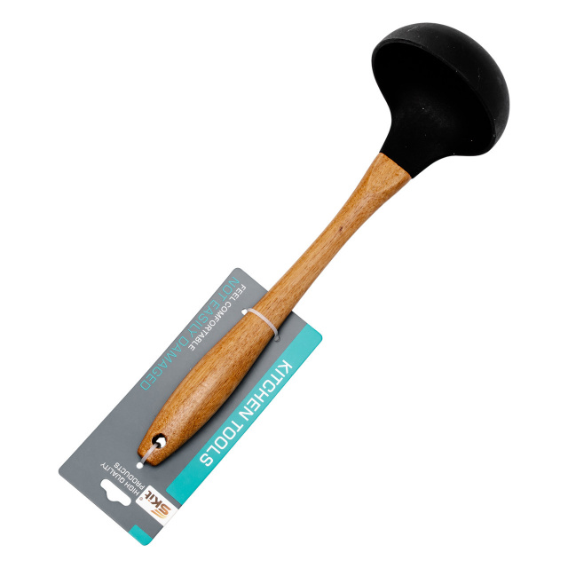 Половник силиконовый кухонный 27 (см) кухонный половник из силикона с деревянной ручкой для супа, бульона