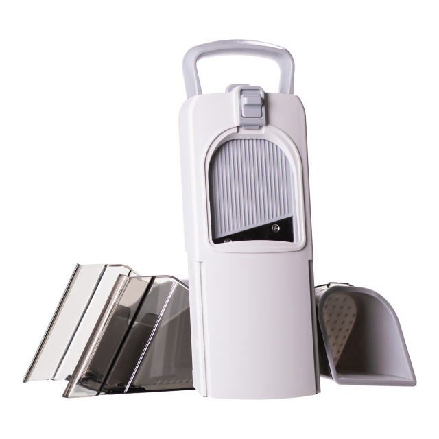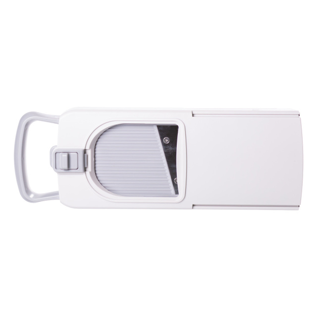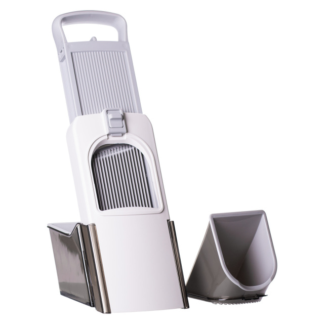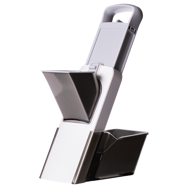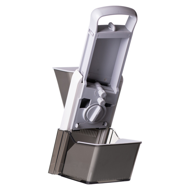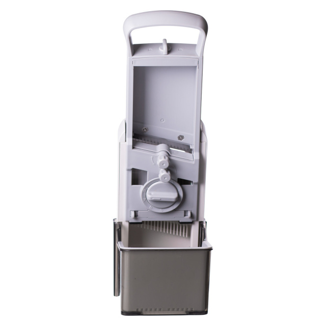 Овощерезка-слайсер с контейнером для нарезки — это удобный и многофункциональный кухонный помощник, который позволяет быстро и безопасно нарезать овощи и фрукты различными способами. Устройство оснащено широкой загрузочной горловиной и ручкой для удобного нажатия, что облегчает процесс шинковки. Главная особенность — регулируемый режущий механизм, не требующий замены лезвий. С помощью поворотного переключателя вы можете легко выбрать желаемую форму и толщину нарезки: тонкую или крупную соломку, ломтики, кубики. Все нарезанные продукты сразу попадают в вместительный контейнер, сохраняя порядок на рабочей поверхности. Основные характеристики ручной овощерезки: Размер: 19×12.5×34 см; Материал: пластик, нержавеющая сталь. Преимущества ручного слайсера для овощей: Простая настройка нарезки — без замены лезвий; Плавная регулировка толщины слайсов и соломки; Контейнер для сбора нарезанных продуктов; Удобная ручка для безопасного использования; Подходит для большинства овощей и фруктов. Овощерезка-слайсер — это отличный выбор для тех, кто ценит комфорт, скорость и порядок на кухне. Универсальность настроек и простота в использовании делают её незаменимой для ежедневного приготовления блюд как дома, так и на даче.