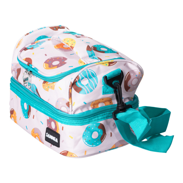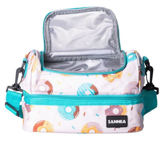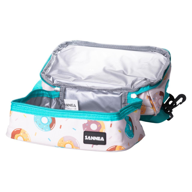 Практичная и милая термосумка с оригинальным дизайном станет отличным выбором для школы, поездок и пикников. Она идеально подходит для хранения ланч-боксов, фруктов, напитков и других перекусов, требующих поддержания температуры. Благодаря универсальному дизайну сумка понравится как детям, так и взрослым. Изготовлена из качественных и безопасных материалов: внешняя часть выполнена из прочной ткани полиэстер, а внутри — пленка PEVA, пригодная для контакта с пищей. В качестве утеплителя используется вспененный полиэтилен, который помогает сохранять тепло или холод в течение нескольких часов. Сумка имеет два основных отделения: верхнее термоотделение и нижний отсек для хранения дополнительных аксессуаров, закусок или салфеток. Боковой карман подходит для бутылки с водой. Удобный ремень регулируется по длине, что позволяет носить сумку как через плечо, так и в руке. Мягкая ручка с дышащей вставкой обеспечивает дополнительный комфорт при транспортировке. Основные характеристики термосумки детской: Размер: 25×15×15 см; Материал: полиэстер+EPE+PEVA; Застежка: молния; Корпус: мягкий; Ручки: верхняя ручка для переноски и плечевой ремень; Особенности: водонепроницаемость, термоизоляция, стильный внешний вид. Особенности сумки для еды в школу: Поддержание температуры до 4–5 часов; Герметичный и водонепроницаемый материал; Удобный регулируемый ремень и мягкая ручка; Боковой карман для бутылки или других аксессуаров; Легкий уход: легко моется и быстро сохнет. Для чего подойдет термосумка для школьника? Школьных обедов; Поездок и путешествий; Пикников и прогулок; Детских садов и кружков; Хранения перекусов и напитков в дороге. Этот ланч бег сочетает в себе практичность, вместительность и оригинальный внешний вид. термосумка станет надежным помощником для хранения и транспортировки еды, сохраняя её свежесть и температуру в течение нескольких часов. Благодаря продуманной конструкции и универсальному дизайну, сумка подходит для разных ситуаций — от школьных обедов до дальних поездок. Удобство, стиль и функциональность делают её отличным выбором для ежедневного использования.