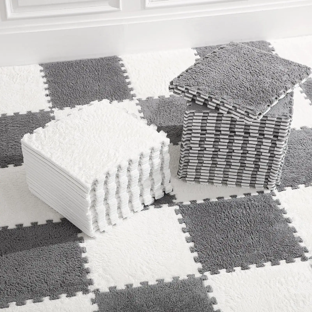Пол-пазл плюшевый 60x150см, 10 пазлов, теплый пол, детский мат, термоковрик для дома, цвет белый