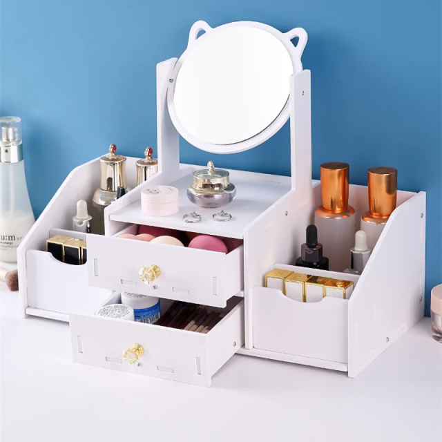 Настольный органайзер для косметики и зеркало с ушками, мини-шкафчик, комод для украшений белого цвета