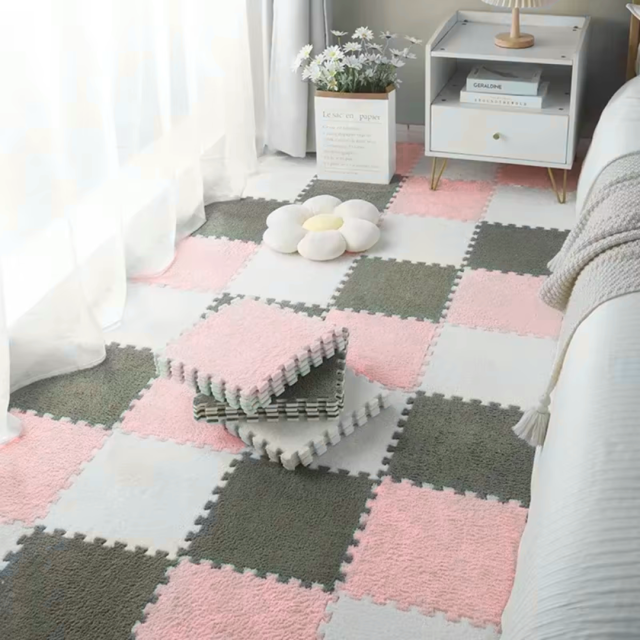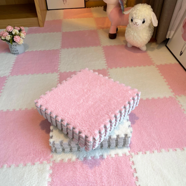 Плюшевый пол-пазл - это мягкие модульные плитки размером 30 x 30 см, которые соединяются между собой как пазл. Комплект состоит из 6 плиток, из которых можно собрать коврик размером 60 x 90 см. Плитки изготовлены из прочной EVA-пены с приятным плюшевым покрытием. Коврик получается тёплым, мягким и комфортным. Он отлично подойдёт для детской комнаты, игровой зоны или уютного уголка для отдыха. На таком полу приятно играть, ползать или просто отдыхать. Внутри упругая EVA-пена, которая хорошо изолирует от холода и смягчает удары. Верхний слой плюш из полиэстера. Он не мнётся, легко моется и быстро сохнет. Плитки плотно лежат на полу и не скользят. Характеристики: Размер одной плитки: 30 x 30 см Размер коврика из 6 плиток: 60 x 90 см Толщина: EVA-пена 1 см, плюшевый слой 0.6 см Цвет: розовый Подходит для создания индивидуального дизайна пола( можно заказать нужное количество + цвет в ассортименте)