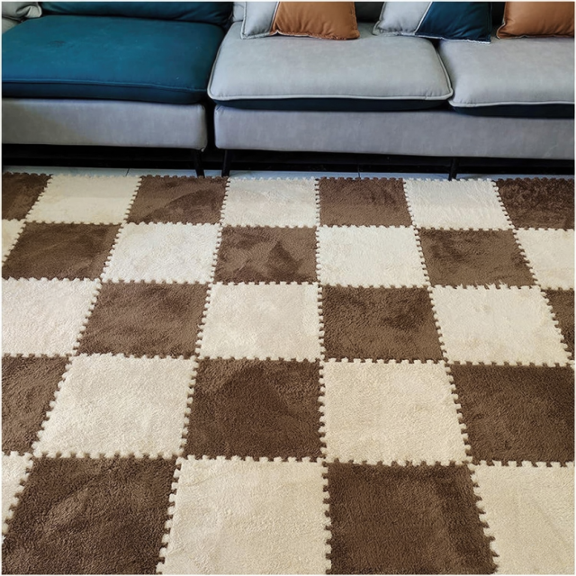 Мягкий плюшевый коврик-пазл это комфортное и тёплое напольное покрытие, состоящее из 20 плиток размером 30×30 см. Все элементы легко соединяются между собой, образуя цельный коврик 120×150 см. Благодаря модульной системе, покрытие можно расширять и менять форму под любые нужды. Такой коврик идеально подойдёт для детской комнаты, игровой или зоны для отдыха. Он безопасный, мягкий, не скользит и прекрасно амортизирует. Подходит даже для малышей отлично изолирует от холодного пола и создаёт уютное пространство для игр и отдыха. Плитки выполнены из прочной и упругой EVA-пены, которая хорошо держит форму, а сверху покрыты приятным плюшевым текстилем. Материал быстро сохнет, легко очищается и не вызывает раздражения кожи. Характеристики: Размер одной плитки 30x30 см Размер коврика из 20 плиток 120x150 см Толщина основы 1 см Толщина плюшевого слоя 0.6 см Цвет коричневый Подходит для создания индивидуального дизайна пола( можно заказать нужное количество + цвет в ассортименте)