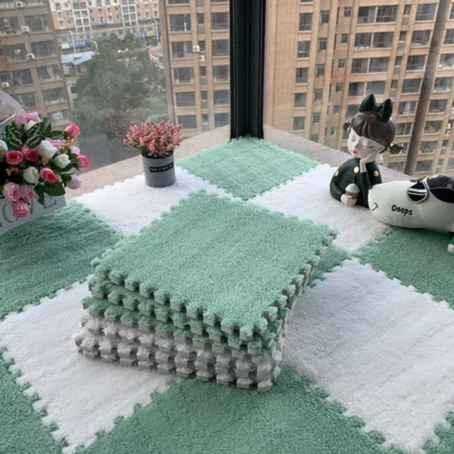 Мягкий плюшевый коврик-пазл это комфортное и тёплое напольное покрытие, состоящее из 20 плиток размером 30×30 см. Все элементы легко соединяются между собой, образуя цельный коврик 120×150 см. Благодаря модульной системе, покрытие можно расширять и менять форму под любые нужды. Такой коврик идеально подойдёт для детской комнаты, игровой или зоны для отдыха. Он безопасный, мягкий, не скользит и прекрасно амортизирует. Подходит даже для малышей отлично изолирует от холодного пола и создаёт уютное пространство для игр и отдыха. Плитки выполнены из прочной и упругой EVA-пены, которая хорошо держит форму, а сверху покрыты приятным плюшевым текстилем. Материал быстро сохнет, легко очищается и не вызывает раздражения кожи. Характеристики: Размер одной плитки 30x30 см Размер коврика из 20 плиток 120x150 см Толщина основы 1 см Толщина плюшевого слоя 0.6 см Цвет зеленый Подходит для создания индивидуального дизайна пола( можно заказать нужное количество + цвет в ассортименте)