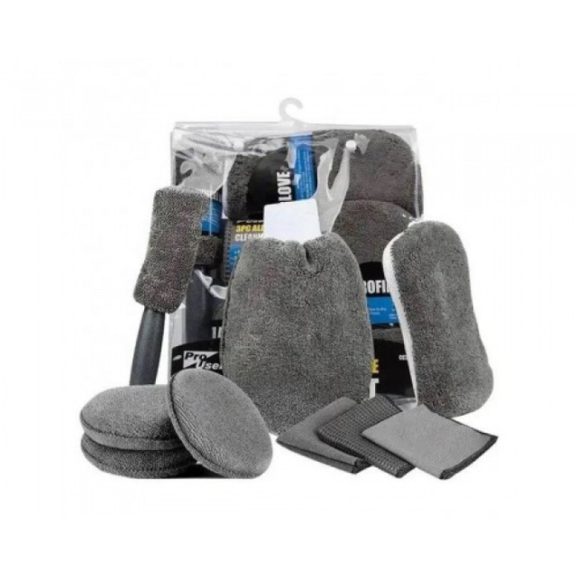 набор для чистки автомобиля изготовлен из микрофибры, которая отличается