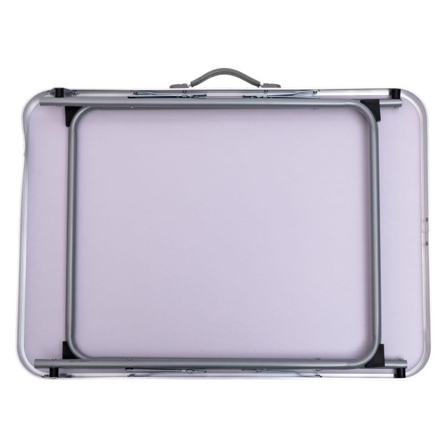 Складной стол с алюминиевым каркасом — удобное решение для выездов на природу, кемпинга или использования в условиях ограниченного пространства. Его конструкция предусматривает возможность быстрого складывания и раскладывания без дополнительных инструментов. После складывания стол приобретает компактную форму, удобно фиксируется и оснащён ручкой для переноски, что упрощает транспортировку. Поверхность столешницы изготовлена из МДФ, что сочетает лёгкость и достаточную прочность для повседневного использования. Каркас выполнен из алюминиевого сплава и дополнен стальными элементами — такая конструкция устойчива к влаге и коррозии. Ножки фиксируются в открытом положении металлическими упорами, а в сложенном состоянии аккуратно убираются внутрь, образуя единую плоскую поверхность. Такая конструкция удобна для хранения и не занимает много места. Стол подходит для использования на террасе, в саду или в поездках. Благодаря продуманным деталям, таким как удобная ручка для переноски и защитные накладки по краям столешницы, изделие отвечает основным требованиям функциональности и практичности. Характеристики складного стола для пикника: Размеры стола в разложенном виде: 70 x 50 x 60 см; Размеры стола в сложенном виде: 70 x 50 x 5.5 см; Цвет: белый; Материал столешницы: МДФ; Материал каркаса (опор): высококачественный алюминиевый сплав + железная труба. Назначение раскладного стола: для кемпинга и отдыха на природе; для использования на даче, террасе или в саду; удобно для транспортировки и хранения; подходит для использования в условиях ограниченного пространства. Благодаря компактности, лёгкому весу и надёжной конструкции, складной стол станет практичным помощником в любой ситуации, где нужен удобный мобильный рабочий или обеденный стол.