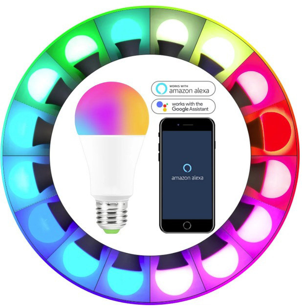 WiFi лампочка работает через приложение Tuya Smart или Smart Life, что делает её полноценной smart лампой. Подключение занимает пару минут, после чего вы сможете управлять лампой прямо со смартфона. Лампа с WiFi поддерживает голосовое управление через Alexa и Google Home, а также позволяет включать и выключать свет, менять яркость и цвет на расстоянии.
