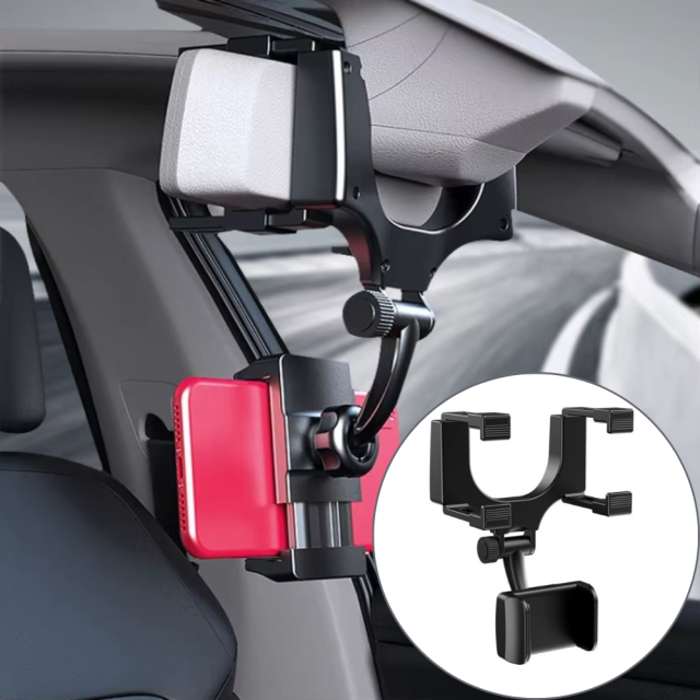 Автомобильный держатель для телефона на зеркало заднего вида — многофункциональное крепление, предназначенное для удобного и безопасного размещения смартфона прямо под зеркалом заднего вида в салоне автомобиля. Держатель надежно фиксируется, не мешает обзору и обеспечивает комфортный угол обзора во время вождения. Оснащён поворотным механизмом, который позволяет настраивать положение телефона под любым удобным углом. Подходит для устройств разных размеров, не царапает корпус, легко устанавливается и снимается. Особенности: Крепление на зеркало заднего вида Регулируемый поворотный механизм Совместимость с разными размерами телефонов Противоскользящие и защитные вставки Быстрая установка без инструментов Прочный и компактный корпус