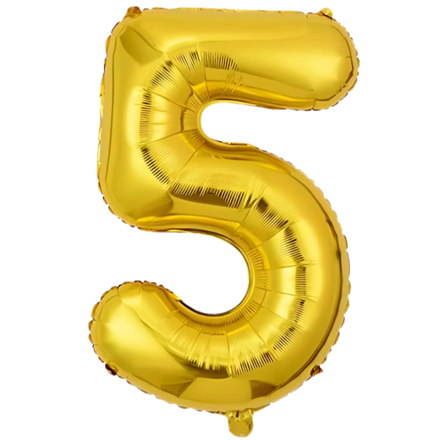 Фольгированный воздушный шар в виде цифры «5» золотого цвета — эффектное украшение для оформления пятого дня рождения, юбилея, фотозоны или...