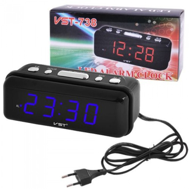 Электронные проводные цифровые часы VST-738-5 синяя подсветка