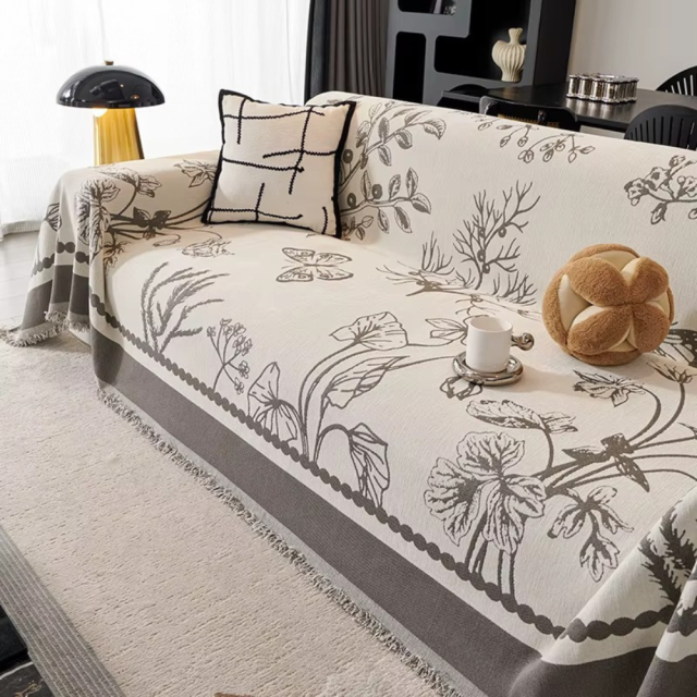 Плед-покрывало на диван или кровать размером 180×230 см — практичное решение для защиты мягкой мебели от загрязнений и износа. Изготовлено из прочного и приятного на ощупь материала шенилл, отличается лёгкостью в уходе и долговечностью. Основной цвет — белый, украшен стильным узором в сером цвете, который придаст интерьеру изысканность и уют. Подходит для использования как чехол-накидка на диван, кресло или кровать. Размер: 180×230 см Материал: износостойкий текстиль шенилл Цвет: белый с серым узором Дизайн: растительный орнамент, стиль минимализм/бохо Назначение: плед, покрывало, чехол-накидка для мебели