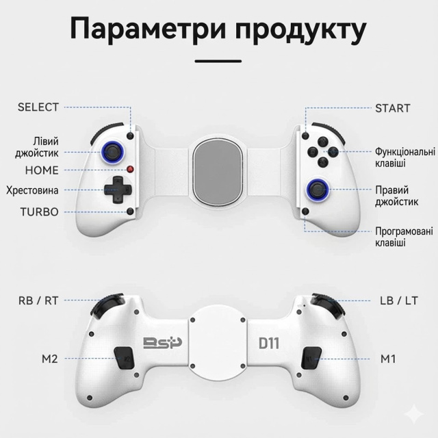 Раздвижной геймпад BSP-D11 – это универсальный беспроводной игровой контроллер, который превращает смартфон, планшет, ПК или Nintendo Switch в полноценную игровую консоль. Удобная раздвижная конструкция, точные стики и чувствительные триггеры обеспечивают комфортный геймплей в шутерах, гонках, спортивных симуляторах и других играх.