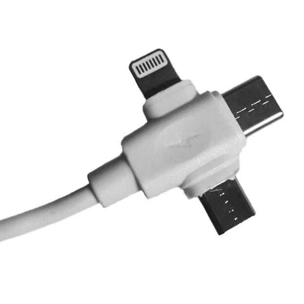 Универсальный кабель 3-в-1 предназначен для удобной зарядки сразу нескольких устройств с разными разъёмами. Он оснащён коннекторами Lightning, Type-C и Micro-USB, что делает его совместимым с большинством смартфонов, планшетов, беспроводных наушников, повербанков и других гаджетов. Отличное решение для дома, работы и путешествий.