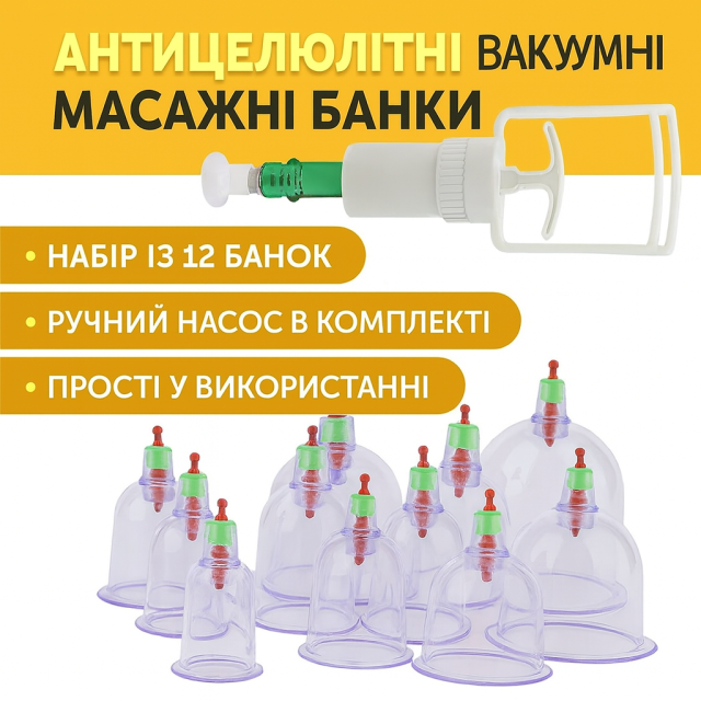 UA MarketОдесаPricolmagТовари та послугиАнтицеллюлитные вакуумные массажные банки с насосом, 12 шт, набор для массажа тела