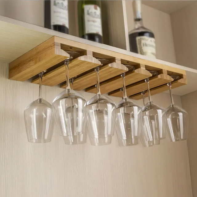 Элегантный подвесной держатель для бокалов из натурального бамбука, рассчитанный на размещение 12 бокалов в 6 рядов. Этот аксессуар станет стильным