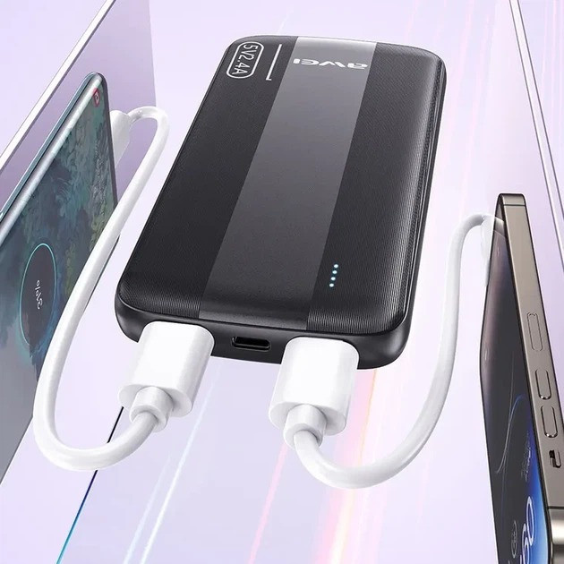 Power Bank **AWEI P20K** разработан для тех, кто ценит мобильность. Благодаря ёмкости 10000 мА·ч, это устройство способно 2-3 раза полностью зарядить современный смартфон или несколько раз подпитать беспроводные наушники и смарт-часы. Использование литий-полимерных элементов питания позволило сделать устройство максимально тонким и легким, сохраняя при этом высокий коэффициент полезного действия (КПД) и устойчивость к износу.