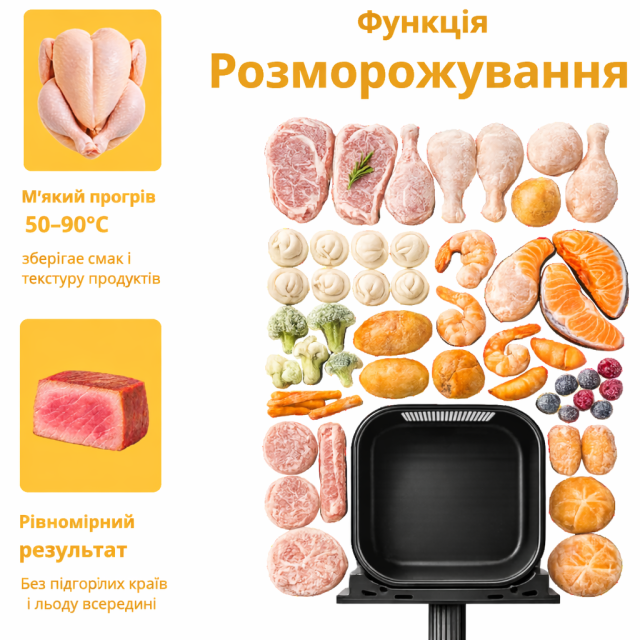 Встроенные 12 автоматических программ полностью исключают возможность ошибки — вам нужно лишь выбрать режим, а устройство самостоятельно подберет оптимальную температуру и время. Сенсорная панель и LED-екран обеспечивают комфортное управление и полный контроль над процессом приготовления.