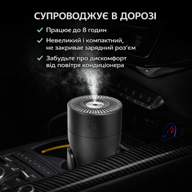 Инновационная «качалка» позволяет направлять поток тумана под нужным углом, а бесшумная работа делает модель идеальной для спальни, детской, офиса или автомобиля. Устройство питается от USB, не требует сложного ухода и отлично подходит для ежедневного использования.