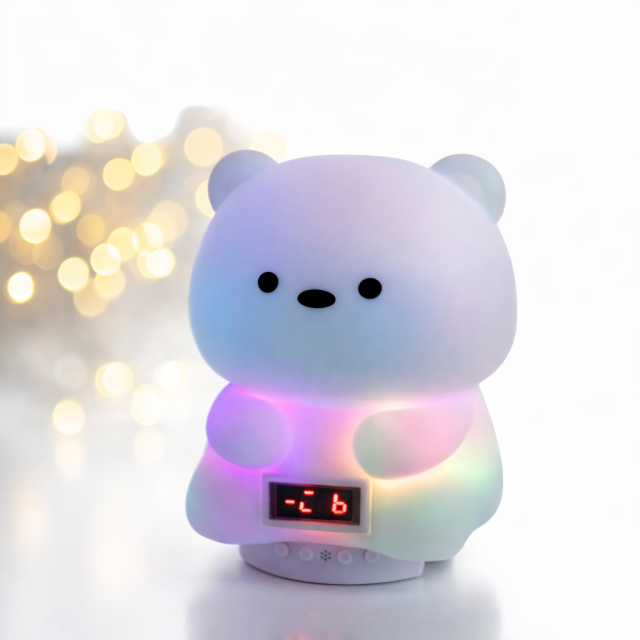 Детский ночник “Мишка” — это многофункциональный светильник, который объединяет мягкое LED-свечение, цветную RGB-подсветку, музыкальную Bluetooth-колонку и электронные часы с таймером.