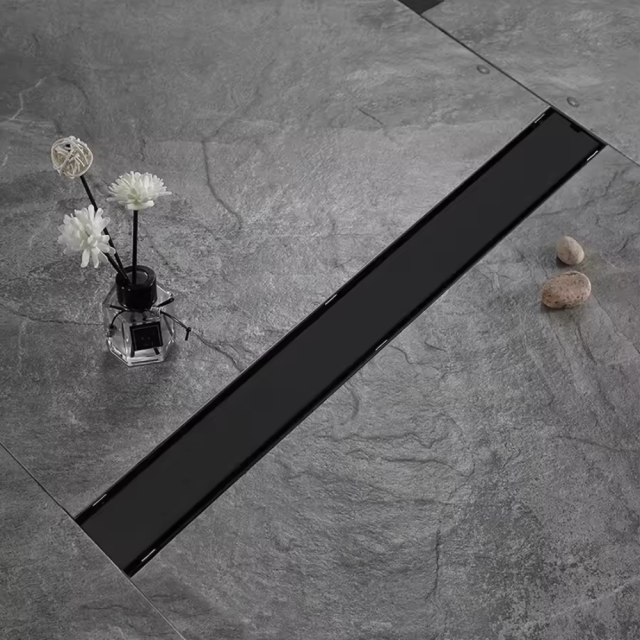 Трап для душа и ванной комнаты под плитку из нержавеющей стали для слива воды, линейный, напольный 60х6.8х2 см,черный