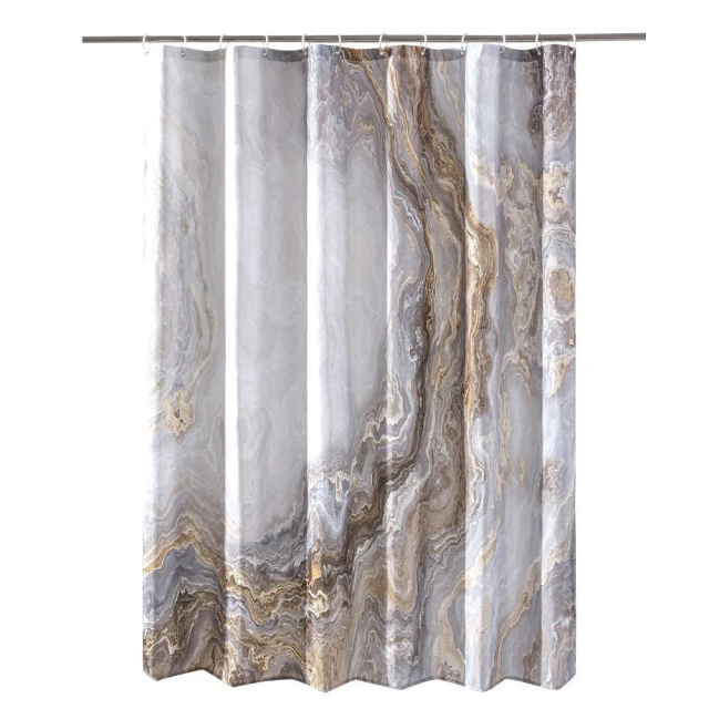 Шторка для ванной и душа с кольцами 180x180 см водоотталкивающая, шторка для душевой и ванной с крючками, мраморное-золото